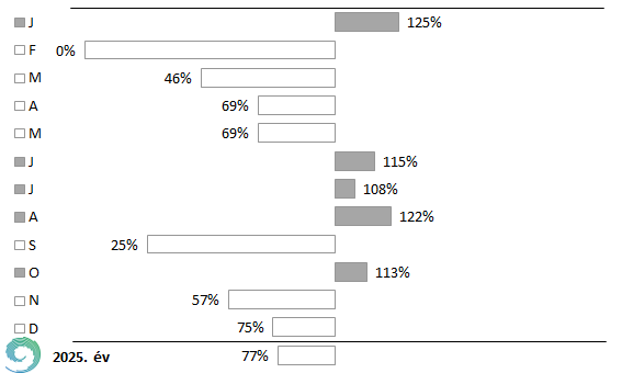 A 15. ábrán jól látható, hogy Budapest Pestszentlőrinc állomáson a 2001-2020 közötti átlaghoz viszonyítva júniusban, júliusban és októberben is 10-20%-kal meghaladta a szélsebesség a megszokott értéket. A többi hónapban az átlagos szélsebesség kisebb volt, a legnagyobb eltérés februárban, márciusban adódott, ezt követte a november, a december és a május. Végeredményben elmondható, hogy Budapest Pestszentlőrincen az átlagosnál kevésbé volt szeles a 2025-ös év.