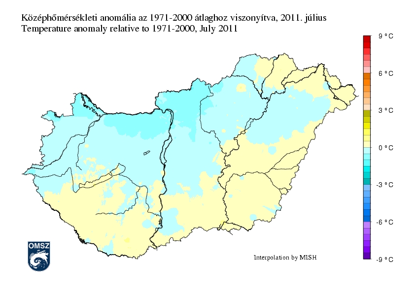Középhőmérsékleti anomália az 1971-2000 átlaghoz viszonyítva