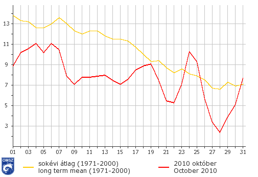 Az ország nagy részén 7 és 9 °C között alakult a hőmérséklet, ennél melegebb völgyeinkben volt csak jellemző (9-10 °C), míg a magasabban fekvő területeken ez az érték a 6 °C-ot sem érte el.