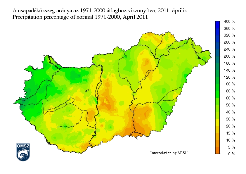 Az ország túlnyomó része szárazabb volt a szokásosnál, csapadékosabb terület csak az Alpokalja térségében rajzolódott ki. Arányaiban a legnagyobb különbség a Duna-Tisza közében és az Alföld délkeleti részén volt jellemző, ahol a sokéves átlagos csapadékmennyiség negyede sem hullott le.
